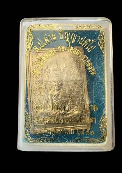 เหรียญหลังโต๊ะหมู่ ผ่านตลอดปลอดภัย หลวงปู่ผ่าน ปัญญาปทีโป ปี 2551 เนื้อทองฝาบาตร