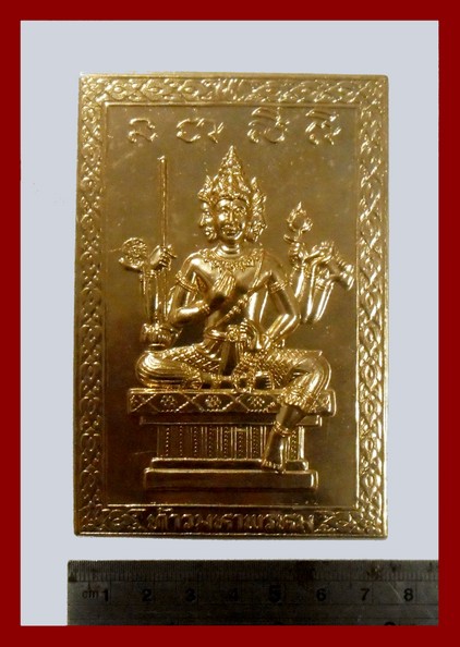 สวยมาก-100-แผ่นปั้มท้าวมหาพรหม หลังแบบ "นะ ชา ลี ติ " เนื้ออลูมิเนี่ยมกะไหล่ทอง ขนาด 7+11 ซม.