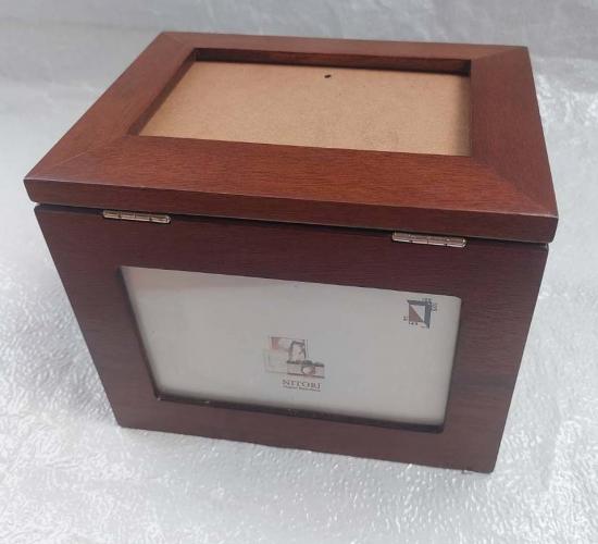 กล่องไม้ NITORI โฟโต้บ็อกซ์ ไม้วอลนัท ขนาด: ประมาณ 20*16.5 หนา 15 ซม. MADE IN JAPAN ใส่รูปได้รอบด้าน