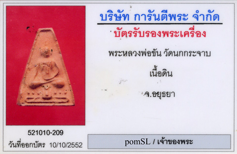 พระนางพญา เนื้อดินเผา หลวงพ่อขัน วัดนกกระจาบ จ.อยุธยา พร้อมบัตร G ครับ