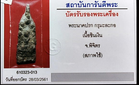 พระนาคปรกพิจิตร กรุมะละกอ เนื้อชินเงิน จ.พิจิตร พร้อมบัตรรับรอง G-pra ครับ