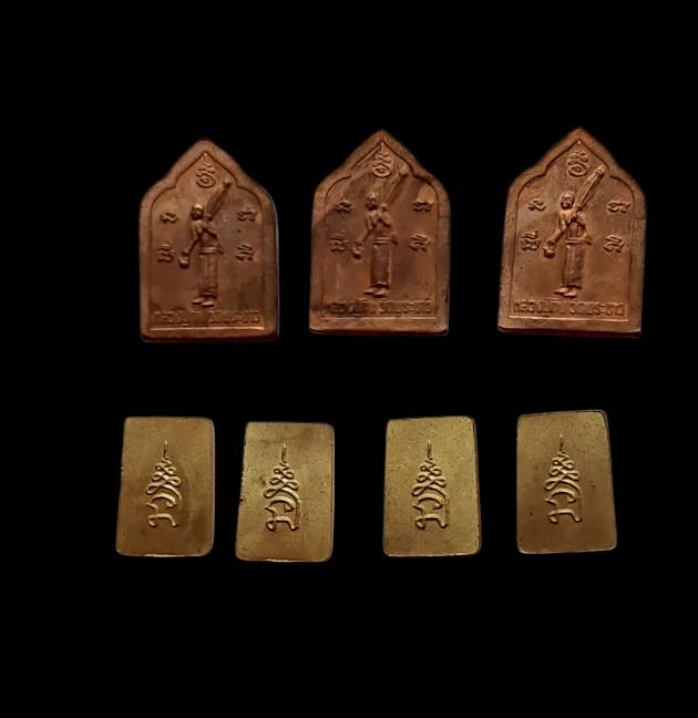 เหรียญห้าเหลี่ยมเล็ก หลังพระสิวลี หลวงปู่ทิม วัดพระขาว อยุธยา 3 เหรียญ และพระสมเด็จจิ๋ว หลังยันต์นะ มหาเศรษฐี 4 เหรียญ