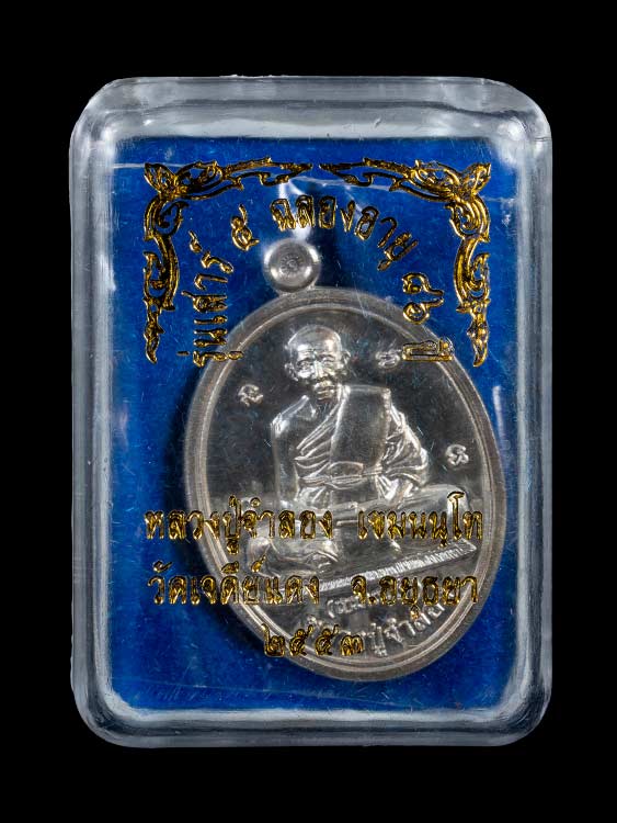เหรียญหลวงปู่จำลอง วัดเจดีย์แดง จ.อยุธยา รุ่นเสาร์ 5 ฉลองอาย ุ 86 ปี พ.ศ.2553 เนื้อเงิน ตอก 2โค๊ต ตอกเลข กล่องเดิม