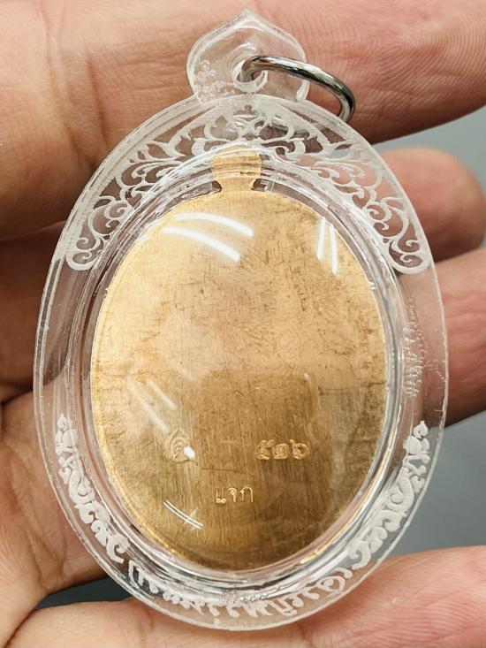 เจริญพรบนรุ่นเเรก เนื้อทองเเดง หลังเรียบ ตอกเเจกในพิธี พร้อมเลี่ยม กล่องเดิมครบ เลข 526 |