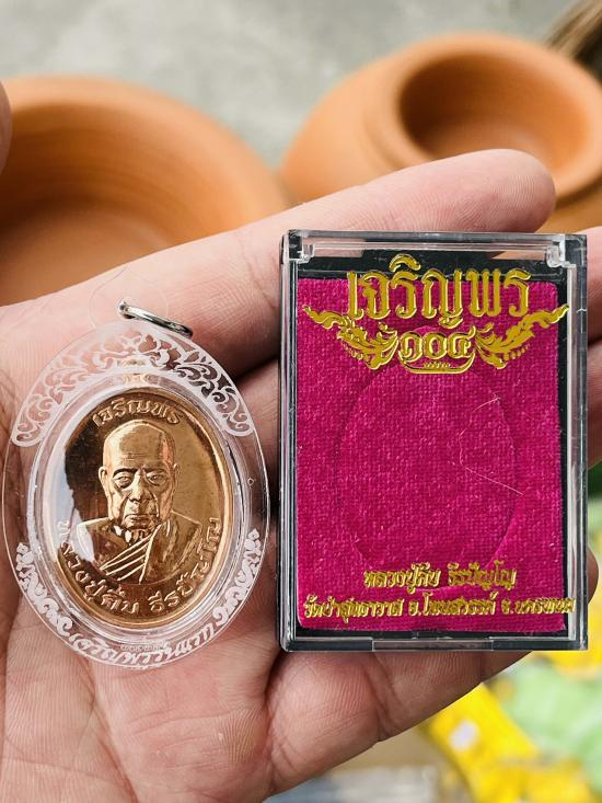 เจริญพรบนรุ่นเเรก เนื้อทองเเดง หลังเรียบ ตอกเเจกในพิธี พร้อมเลี่ยม กล่องเดิมครบ เลข 539 |