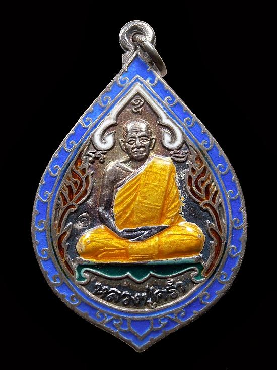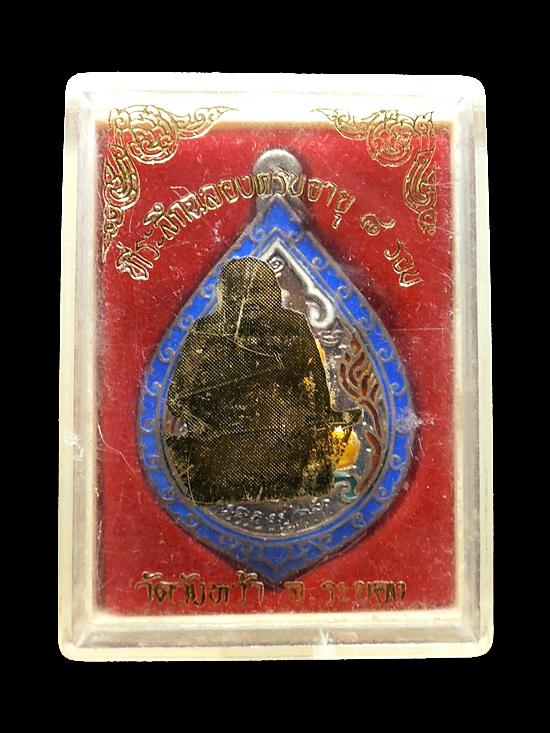 เหรียญหยดน้ำ ๘ รอบ หลวงปู่คร่ำ วัดวังหว้า เนื้อเงินลงยา ปี 2535 จ.ระยอง