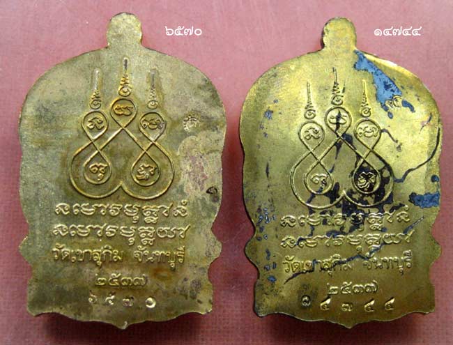 เหรียญนั่งพาน เนื้อทองเหลือง หลวงพ่อสมชาย วัดเขาสุกิม ตอกโค้ด ส และโค้ด จำนวน 2 เหรียญ หมายเลข ๖๕๗๐ และ ๑๔๗๔๔ ได้มาจากคนในพื้นที่