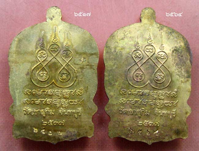 เหรียญนั่งพาน เนื้อทองเหลือง หลวงพ่อสมชาย วัดเขาสุกิม ตอกโค้ด ส และโค้ด จำนวน 2 เหรียญ หมายเลข ๖๕๑๗ และ ๖๕๖๔ ได้มาจากคนในพื้นที่