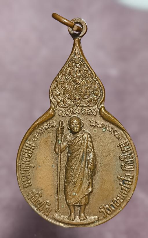 วัดดอยแม่ปั๋ง เชียงใหม่ เหรียญหลวงปู่แหวน สุจิณโณ รุ่นยืนถือไม้เท้า หลัง ม.ว.ก. ปี 2519