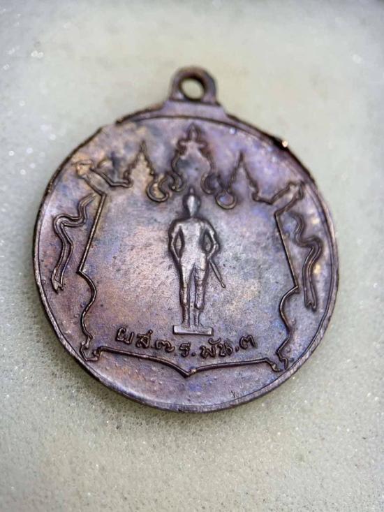 เหรียญกองพันเชียงราย หลวงพ่อเกษม เขมโก ปี 2518 เนื้อทองแดง ไม่ต๊อกโค๊ต