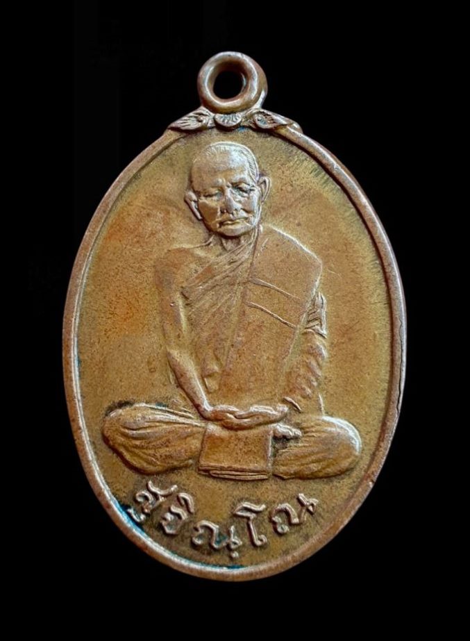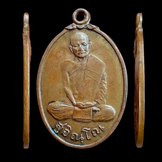 เป็นเหรียญรูปไข่ ด้านหน้ารูปหลวปู่นั้งมาธิเต็มองค์ห่มเฉลียง พาคสังฆาฏิ จารึกฉายา "สุจิณฺโณ"