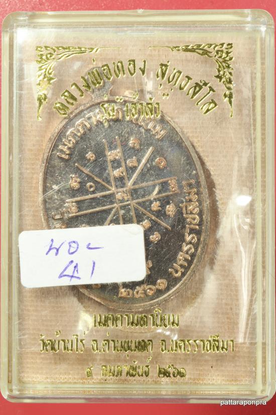 เหรียญหลวงพ่อทอง รุ่นเจ้าสัว ปี 2561 เนื้อนวะ หมายเลข 41