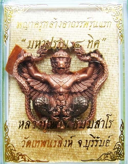 พญาครุฑ รุ่นแรก มหาปราบ ๔ ทิศ หลวงปู่พวง วัดเทพนรสิงห์ (วัดโคกตาสิงห์) จ.บุรีรัมย์ ปี 2565 เนื้อทองแดง หมายเลข 49 สวยๆ พร้อมกล่องเดิม