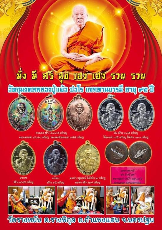 หลวงปู่แผ้ว ปวโร เหรียญ มั่ง มี ศรี สุข ปี 2561 เนื้อเงิน ผิวดระจก ซีลเดิม จมูกร้อย สภาพสวยครับ