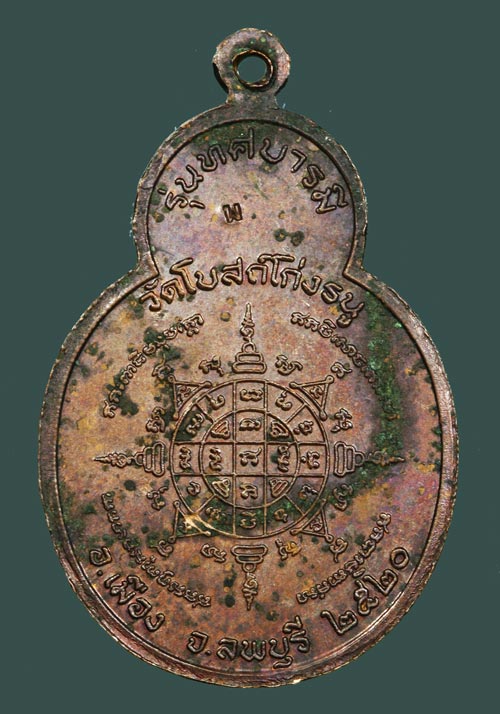 เหรียญรุ่นทศบารมี หลวงพ่อพริ้ง วัดโบสถ์โก่งธนู จ.ลพบุรี ปี 2520 เนื้อทองแดง ตอกโค๊ด "พ" ผิวหิ้ง