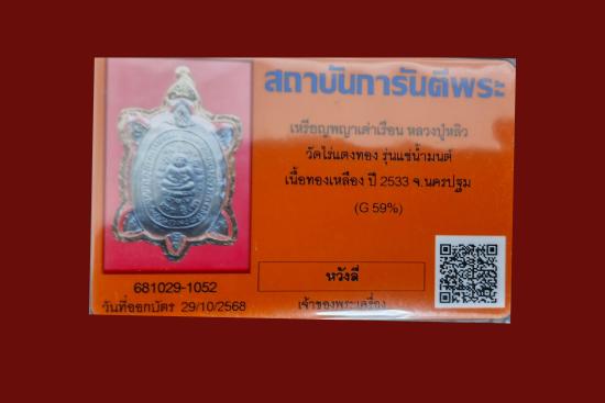 @@@เคาะเดียว@@@หลวงปู่หลิว เหรียญเต่ารุ่นแรก แช่น้ำมนต์ ปี33 แท้ทันหลวงปู่ปลุกเสกมาพร้อมเลี่ยมทอง+บัตร |