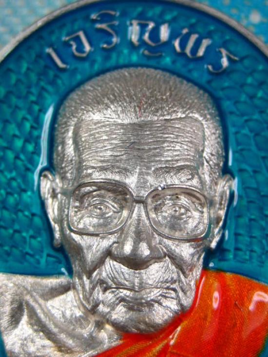 ### เนื้อเงิน ### เมื่อท่านเป็นผู้กำหนด เหรียญเนื้อเงิน ลงยาสีฟ้า ลงยาจีวร รุ่น เจริญพรใส่แว่น หลวงปู่อิ่ม วัดทุ่งนาใหม่ จ.นครศรีธรรมราช น้ำหนักเหรียญ 16.47 กรัม (---A72---)