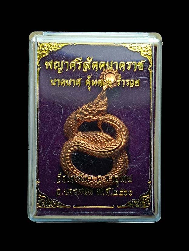 พญาศรีสัตตนาคราช นาคบาศ คุ้มดวง ร่ำรวย ปี 60 เนื้อทองแดง วัดไตรมิตร จ.นครพนม เลขสวย 499 กล่องเดิม