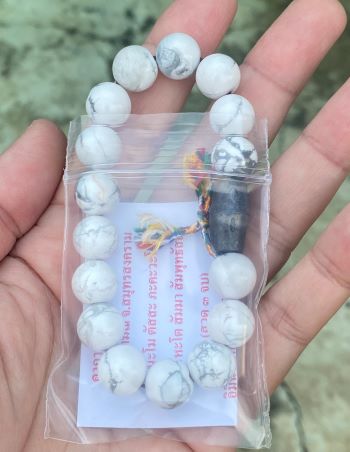 ( เคาะเดียวครับ ) ข้อมือ หินมงคล ฮาวไลท์ Howlite + ลูกสะกด หลวงพ่ออิฏฐ์ วัดจุฬามณี จ.สมุทรสงคราม