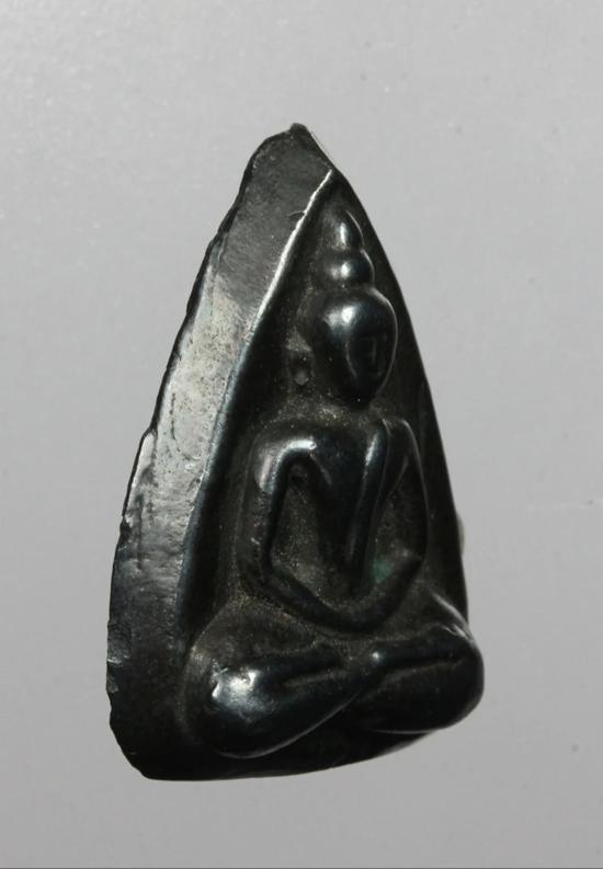 พระกลีบบัวหลังพระปิดตา หลวงปู่บุญ พิมพ์ใหญ่ เนื้อเมฆพัด วรรณะดำเข้ม คล้ายคลึงกับพระเนื้อเมฆพัดของหลวงปู่นาค วัดห้วยจระเข้