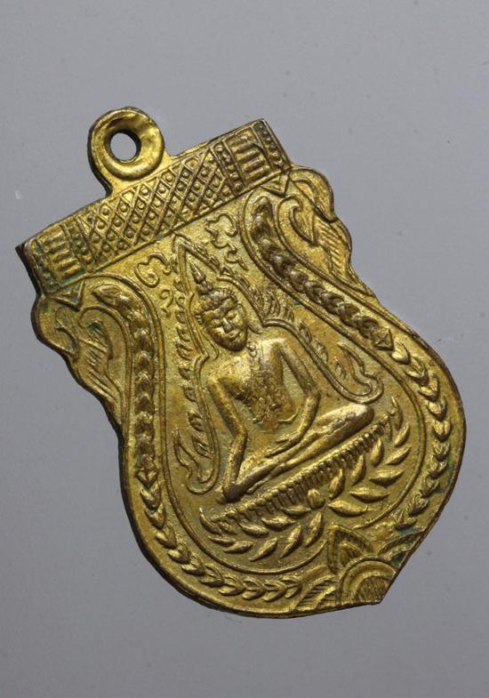 เหรียญพระพุทธชินราช หลวงพ่อยู่ วัดเกยไชย ปี2471 ทองแดงกะไหล่ทอง