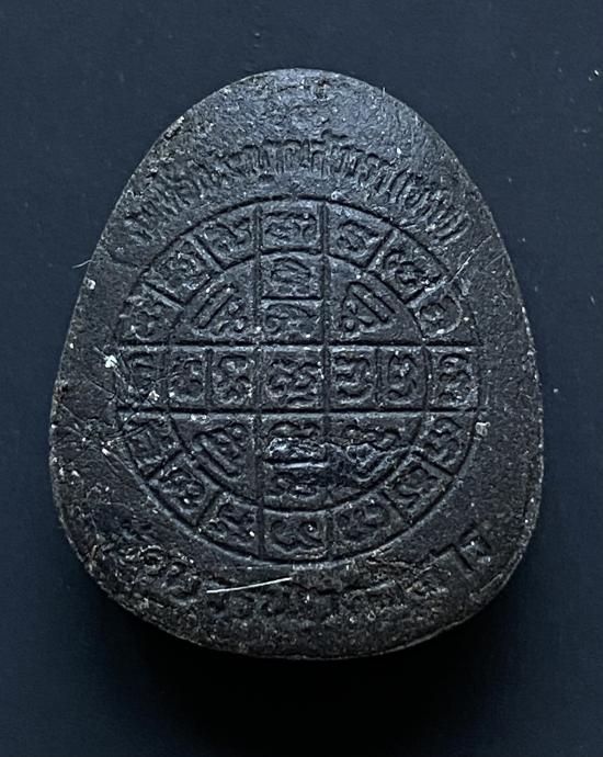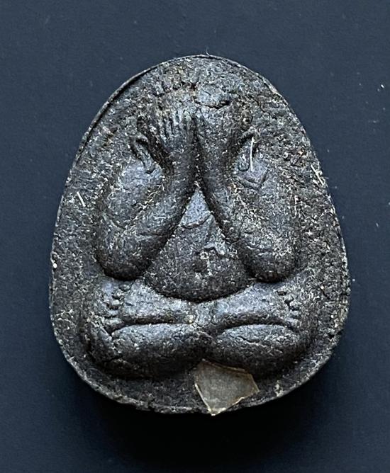 พระปิดตายันต์ดวงเล็ก ปี2523 สมเด็จพระญาณสังวร (เจริญ) วัดบวรนิเวศ_(เนื้อผงใบลานดำปลดหนี้)_พิมพ์หนา_มีเส้นเกศา_ |