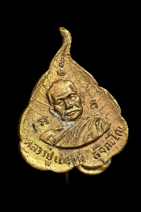 +++วัดใจ+++ เข็มกลัดรูปใบโพธิ์ กระไหล่ทอง ปี 2516 หลวงปู่แหวน |
