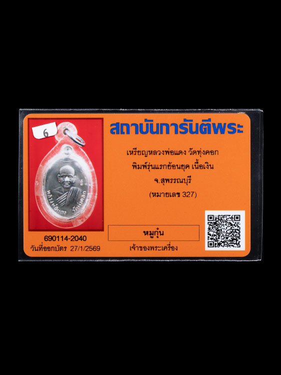 เหรียญหลวงพ่อแดง วัดทุ่งคอก "เนื้อเงิน" พร้อมบัตรรับรองจากเว็บครับ ผมไม่ทราบที่ ยี่ห้อรุ่นครับ พระรังเก่า ชุดนี้ผมไปเหมาบ้านที่กรุงเทพฯมา ได้มาหลายอย่าง ทยอยลงครับ วัดใจเท่าไหนเท่านั้นทุกรายการครับ