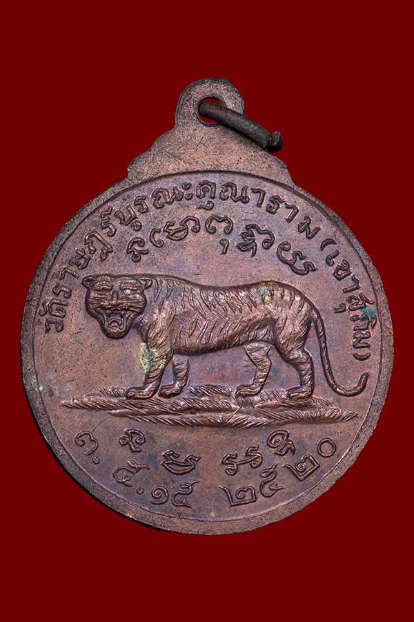 เหรียญหลวงพ่อสมชาย วัดเขาสุกิม หลังเสือยืน เนื้อทองแดง ปี 2520 จันทบุรี