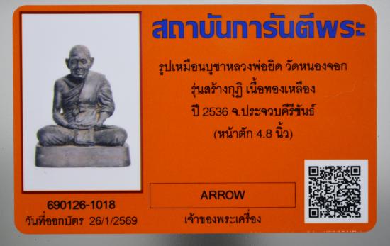 พระบูชาหลวงพ่อยิด วัดหนองจอก หน้าตัก 4.8 นิ้ว พร้อมบัตรรับรอง พระแท้ทันตัว