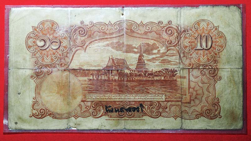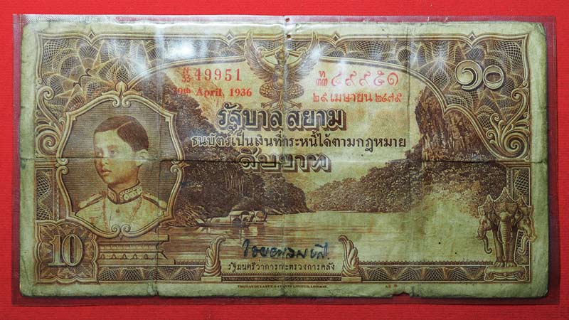 ***ธนบัตรใบใหญ่ 10 บาท ร.8 ลายเซ็น ไชยยศ สมบัติ พ.ศ.2479 เลขแดง ๔๙๙๕๑ หายากมากๆ***
