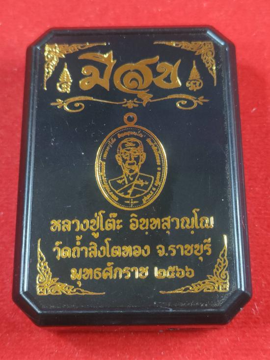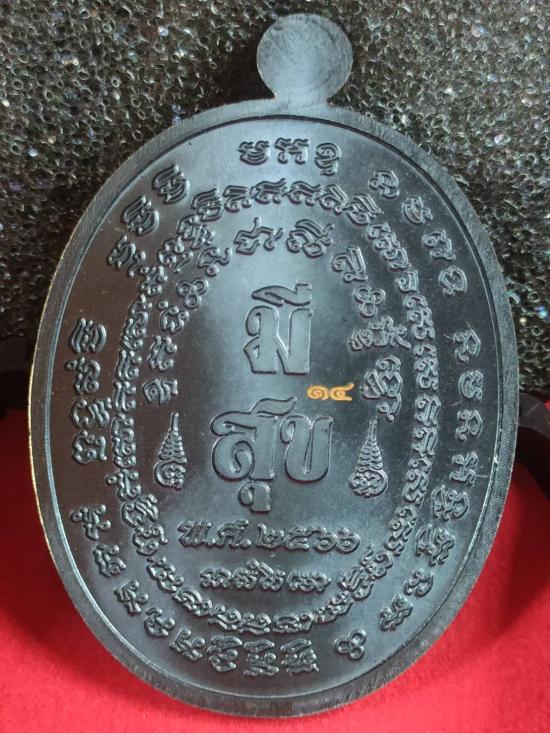 เหรียญมีสุข หลวงปู่โต๊ะ ปี66 เนื้อทองแดงรมดำ พื้นเหลือง เลข14 ออกวัดถ้ำสิงโตทอง จ.ราชบุรี กล่องเดิม