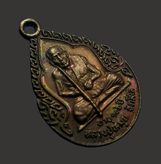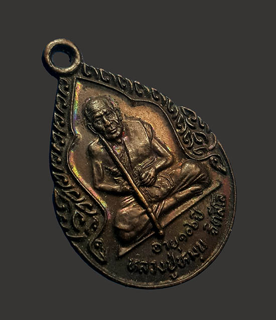 เหรียญหยดน้ำ หลวงปู่หมุน วัดบ้านจาน ออกวัดหงส์รัตนาราม ปี พ.ศ.2543 เนื้อทองแดง สร้างแค่ 2000 เหรียญ +++ เหรียญรูปเหมือนหลวงปู่หมุน วัดบ้านจาน ออกวัดหงษ์รัตนาราม จัดสร้างในช่วงปี 2543 ทางเจ้าอาวาสวัดหงษ์ได้ไปกราบหลวงปู่หมุน และได้ขออนุญาตสร้างเหรียญขึ้นจำนวน 2,000 เหรียญ ซึ่งหลวงปู่หมุนก็อนุญาติ เมื่อสร้างเสร็จได้นำไปถวายหลวงปู่หมุนปลุกเสกถึง 1 พรรษา ดังนั้นเหรียญรุ่นนี้ถึอเป็นเหรียญยุคแรกๆ แท้ และทันหลวงปู่อย่างแน่นอน ที่สำคัญมีแอบอ้างเหรียญหลวงปู่หมุนเป็นของวัดหงษ์ฯ กันแล้ว ทั้งที่เหรียญหลวงปู่หมุนรุ่นเดียวนี้ วัดหงษ์รัตนาราม จัดสร้างเพียงเหรียญหยดน้ำ อายุ 106 ปี พ.ศ. 2543 เท่านั้น ใครว่าเหรียญรุ่นนั้นรุ่นนี้เป็นของวัดหงษ์ฯ อย่าไปเชื่อครับ อาจโดนหลอกได้ สภาพสวยเดิมๆ เก็บไว้เพียงเหรียญเดียว จากคำรับรองของท่านเจ้าอาวาสวัดหงษ์ฯ หลวงปู่หมุนท่านกำหนดท่าทางในเหรียญที่นำไม้เท้าพาดบ่าขวาและยันต์พระเจ้า16 พระองค์