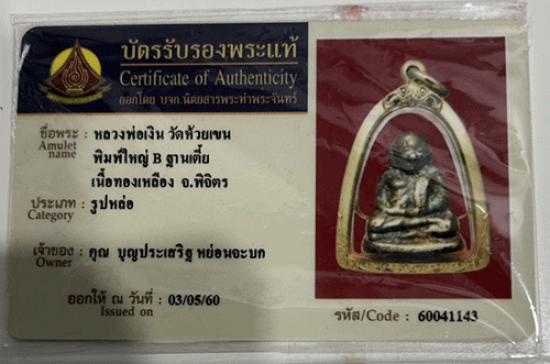 รูปหล่อหลวงพ่อเงิน วัดห้วยเขน พิมพ์B เลี่ยมทองสั่งทำสวยๆ พร้อมบัตรรับรองเพื่อนบ้าน