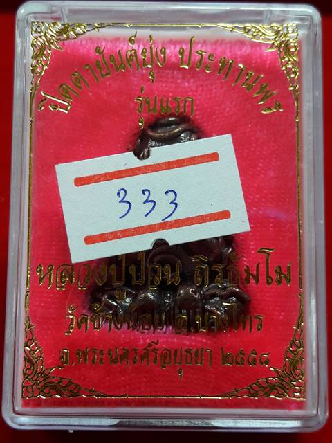 "วัดใจ" หมายเลขตอง 333 พระปิดตายันต์ยุ่ง ประทานพร มหาลาภ มหาเศรษฐี รุ่นแรก หลวงปู่ป่วน วัดช้างน้อย จ.อยุธยา เนื้อมหาชนวนมันปู อุดแร่มหาลาภหลวงพ่อปาน บรรจุเส้นเกศาหลวงปู่ป่วน สภาพสวยพร้อมกล่องเดิม |
