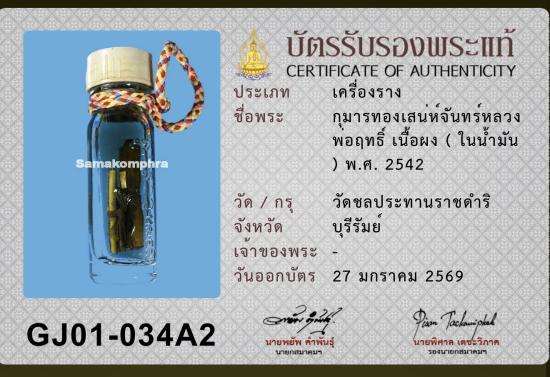 กุมารทองเสน่ห์จันทร์ หลวงพ่อฤทธิ์ วัดชลประทานราชดำริ ปี 2542 พร้อมใบรับรองสมาคม