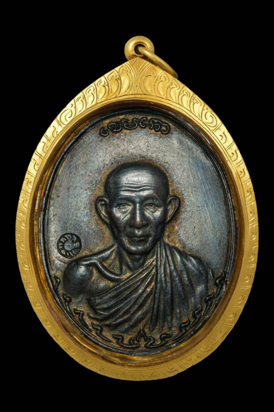 เหรียญกองพัน 2 หลวงพ่อเกษม เขมโก วัดพญาวัน เนื้อทองแดง ปี 2536 พร้อมเลี่ยมทอง