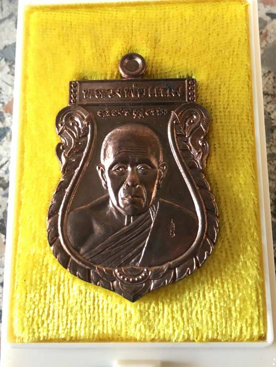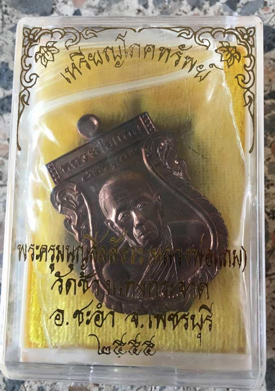 เหรียญเสมาโภคทรัพย์ หลวงพ่อแถม วัดช้างแทงกระจาด เพชรบุรี เนื้อนวะฯ แยกจากชุดทองคำ หมายเลข 8 สภาพสวยพร้อมกล่องเดิม