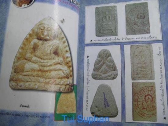 สมเด็จเนื้อกล้วยน้ำไท - ข้าวก้นบาตร หลวงปู่ทิม วัดพระขาว สวย พร้อมใบประกาศนียบัตร เป็นพระสมเด็จ หลวงปู่ทิม ที่น่าเสาะแสวงหาเก็บกันไว้ พระสมเด็จ เนื้อกล้วยน้ำไท-ข้าวกันบาตร ปี 2524 เนื่องจากเนื้อของพระรุ่นนี้ มวลสารหลักเป็นกล้วยน้ำไทและข้าวกันบาตร ดังนั้นวรรณะของ พระจะออกเป็นสีเทาและสีขาวคล้ำ โดยพระรุ่นนี้จัดสร้างกันหลายพิมพ์ ด้านหลังปั้มตรายางของวัด พระลูกวัดเป็นผู้สร้างถวายให้หลวงปู่ทิมปลุกเสก เท่าที่ปรากฏมี 5 พิมพ์ เมื่อหลวงปู่ปลุกเสกแล้ว ก็เก็บเอาไว้ในโบสถ์เป็นเวลาหลายปี ก่อนจะนำออกมาแจกแก่ญาติโยมในปี 2524 ถ้าเป็นผู้ที่ศรัทธาหลวงปู่ทิม รุ่นนี้น่าเก็บไว้ในคอลเล็กชั่นที่สุดรุ่นนึง หลักฐานอ้างอิงจาก หนังสือพุทธคุณ
