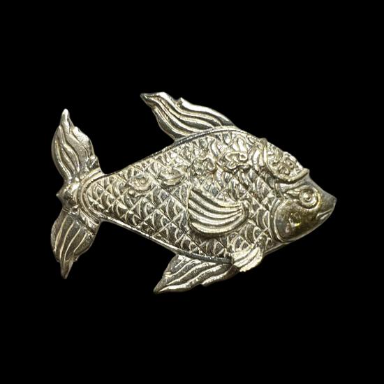 ปลาตะเพียน หล่อโบราณ ปี 51 หลวงปู่ทิม วัดพระขาว เนื้อกะไหล่เงิน พร้อมกล่องเดิม น่าใช้