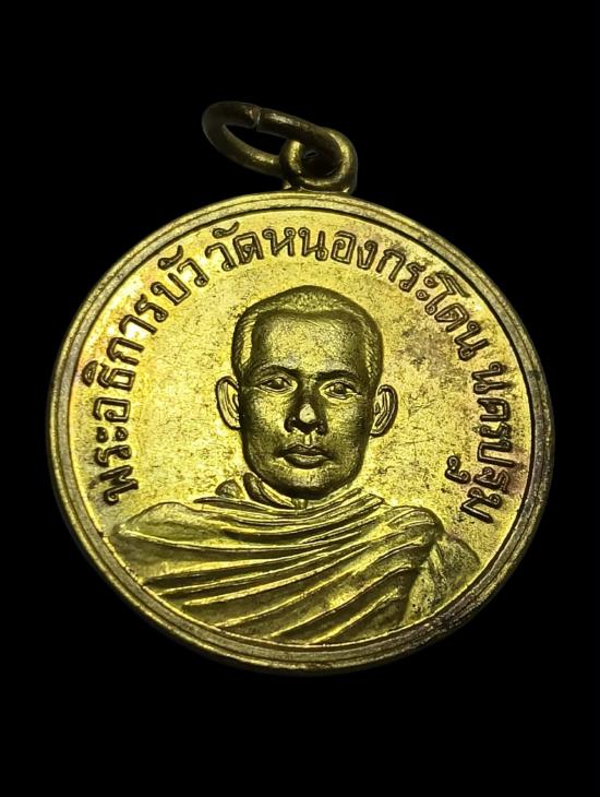 เหรียญรุ่นแรก พระอธิการบัว วัดหนองกระโดน นครปฐม ทองฝาบาตร สวยครับ