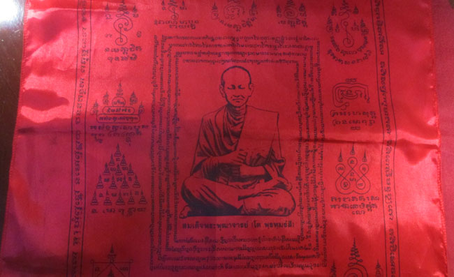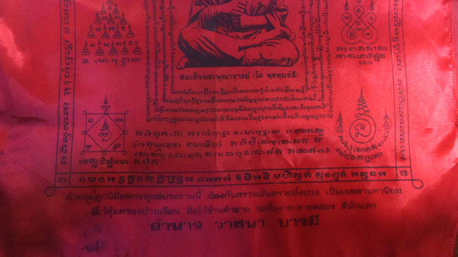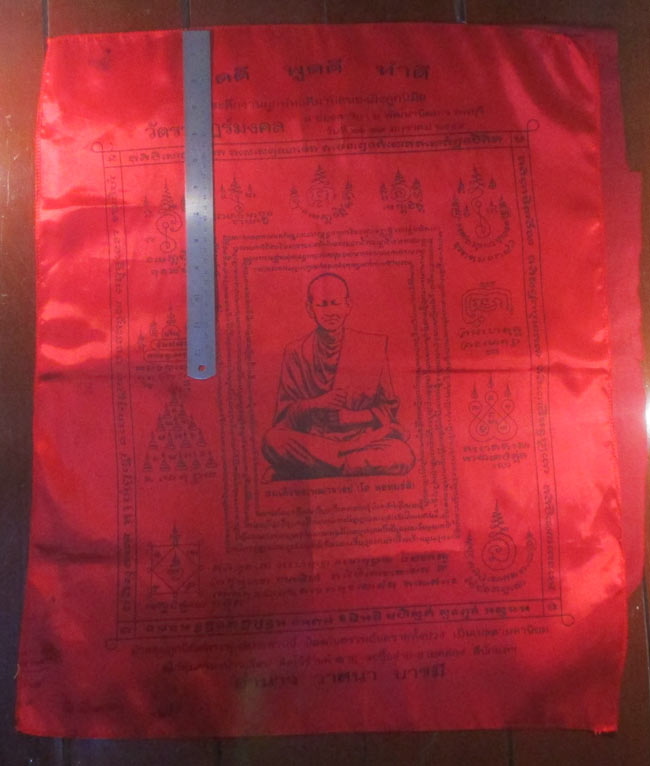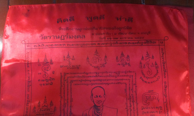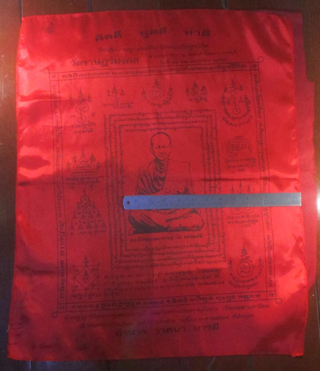 ผ้ายันต์ ที่ระลึกงานผูกพัทธสีมาปิดทองฝังลูกนิมิต วัดราษฏร์มงคล อ.พัฒนานิคม จ.ชลบุรี ครับ (พระบ้าน ครับ)