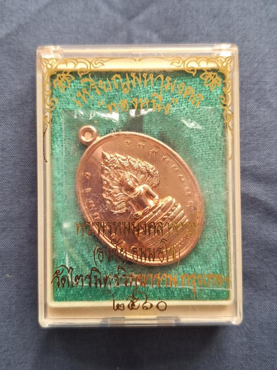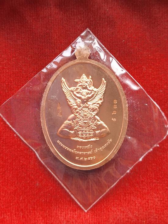 เหรียญนาคปรก มหามงคล ทองหนึ่ง ด้านหลัง พระนารายณ์ ทรงครุฑประทับพระราหู เนื้อทองแดง สมเด็จพระมหารัชมงคลมุนี (ธงชัย ธัมมธโช) วัดไตรมิตร กล่องเดิม