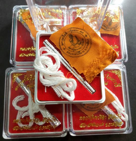ตะกรุดเงิน ปั๊มจีวรหัวใจเศรษฐีรุ่นแรก 77 ยุคต้น หลวงปู่ศิลา สิริจันโท จำนวน 5 กล่อง |
