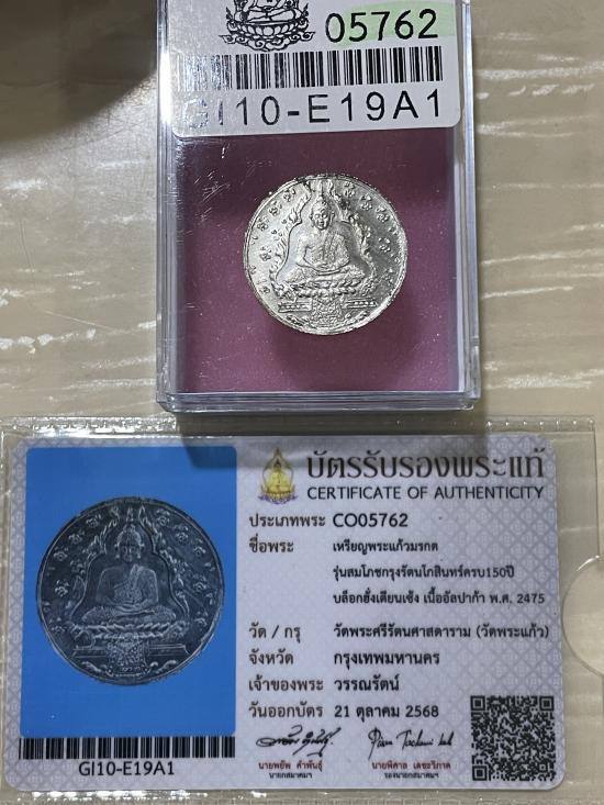 (เคาะแดง4900) +บัตรสมาคม เหรียญพระแก้วมรกต วัดพระแก้ว 2475