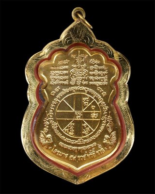 เหรียญหลวงพ่อรวย วัดตะโก รุ่นไตรมาส 59 รวยรวยรวย เนื้อทองแดงกะไหล่ทองลงยา ปี 2559 จ.พระนครศรีอยุธยา เลี่ยมทองคำแท้
