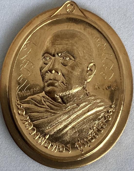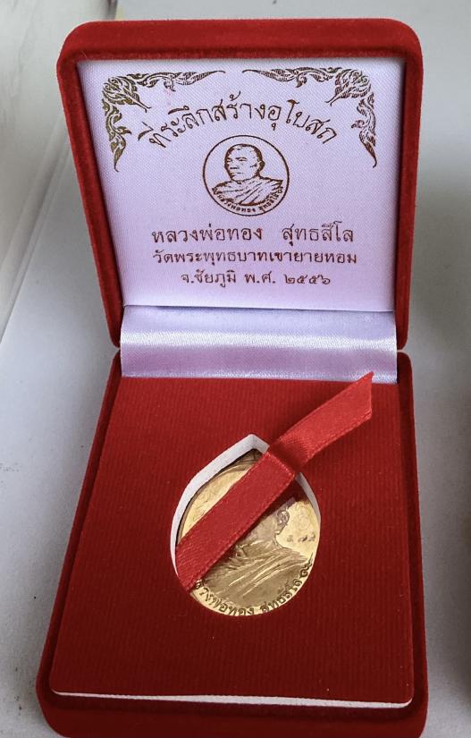 เหรียญหันข้าง รุ่นที่ระลึกสร้างอุโบสถ หลวงพ่อทอง สุทธสีโล วัดพระพุทธบาทเขายายหอม จ.ชัยภูมิ ปี2556 เนื้อสัตตะหลังแบบ หมายเลข 579 พร้อมกล่องครับ
