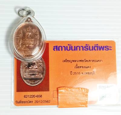 เหรียญหลวงพ่อวัดเขาตะเครา เนื้อทองแดง ปี2516 จ.เพชรบุรี |