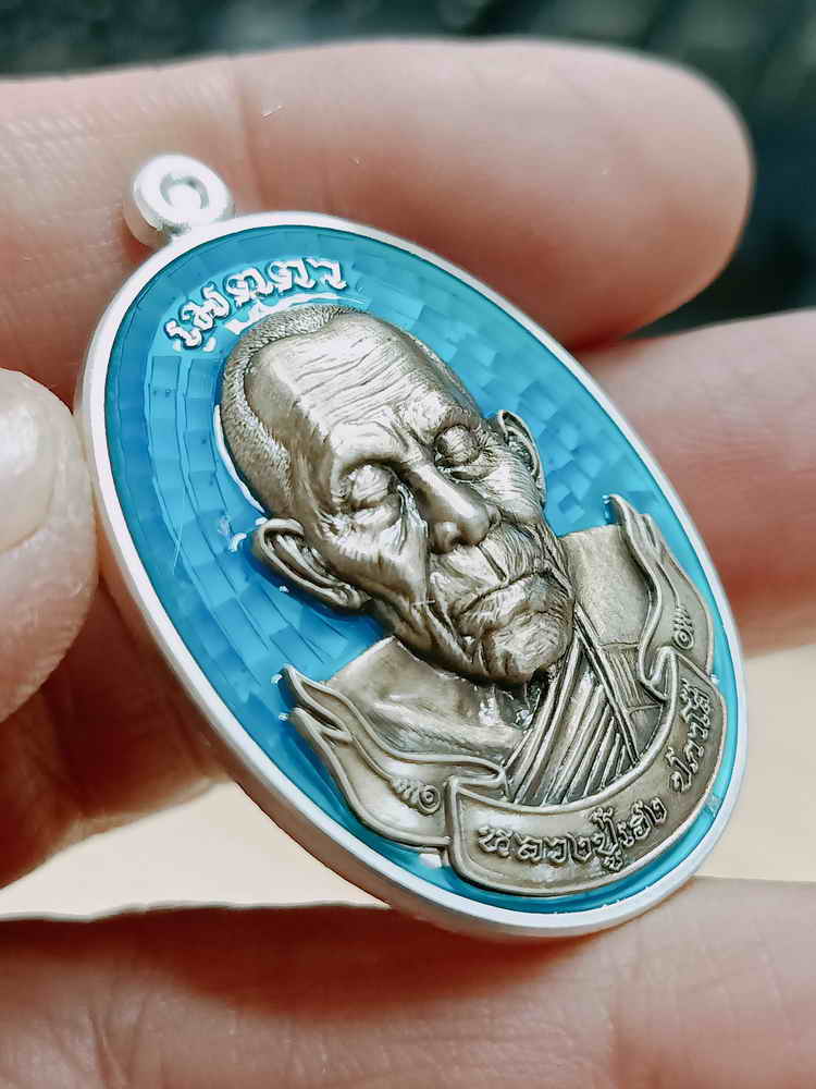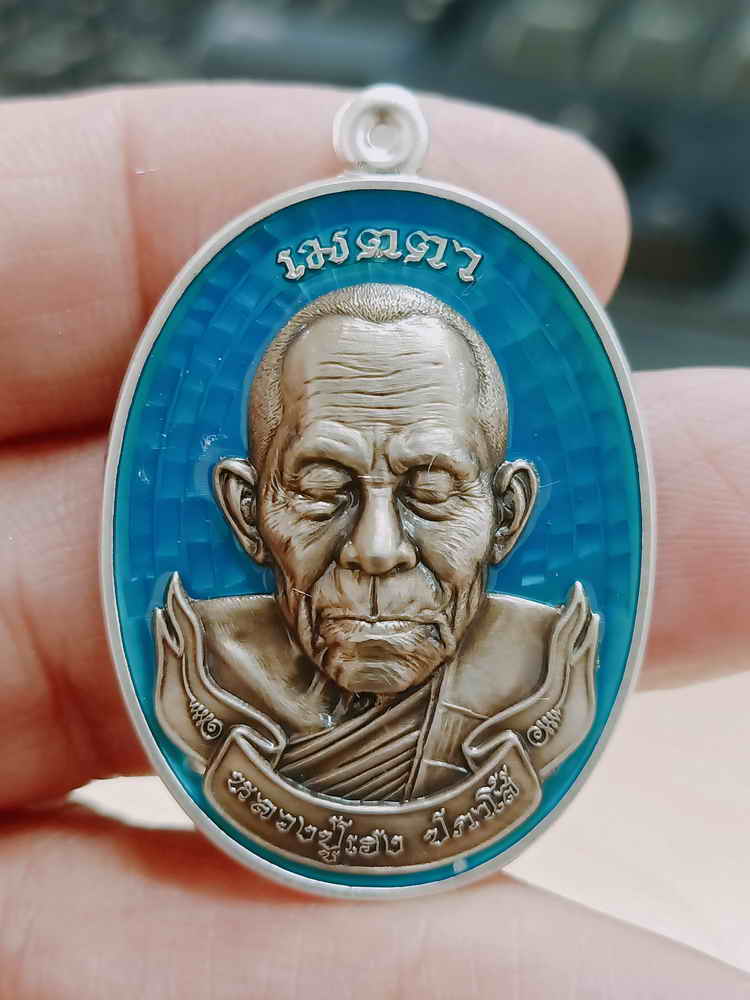 วัดใจ 100 เหรียญเมตตา หลวงปู่เฮง ปภาโส วัดบ้านด่านช่องจอม จ.สุรินทร์ 2566 ชุบเงิน หน้ากากอัลปาก้าซาติน ลงยาฟ้า หมายเลข 28 กล่องเดิม |