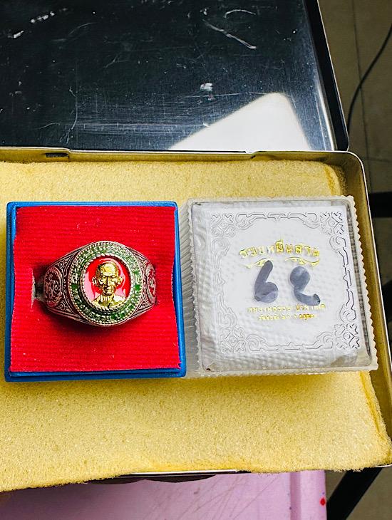 เคาะเดียวแดง* แหวน หลวงพ่อรวย วัดตะโก รุ่น รวยหมื่นล้าน ปี 2561 ออกวัดหัวคุ้ง เนื้อเงินลงยา หน้ากากทองคำแท้ แหวนหน้าใหญ่ (ผู้ชาย) Size 62 เลขโค๊ต **No.55** ป้ายแดงนอนกล่องไม่เคยผ่านการใช้งาน